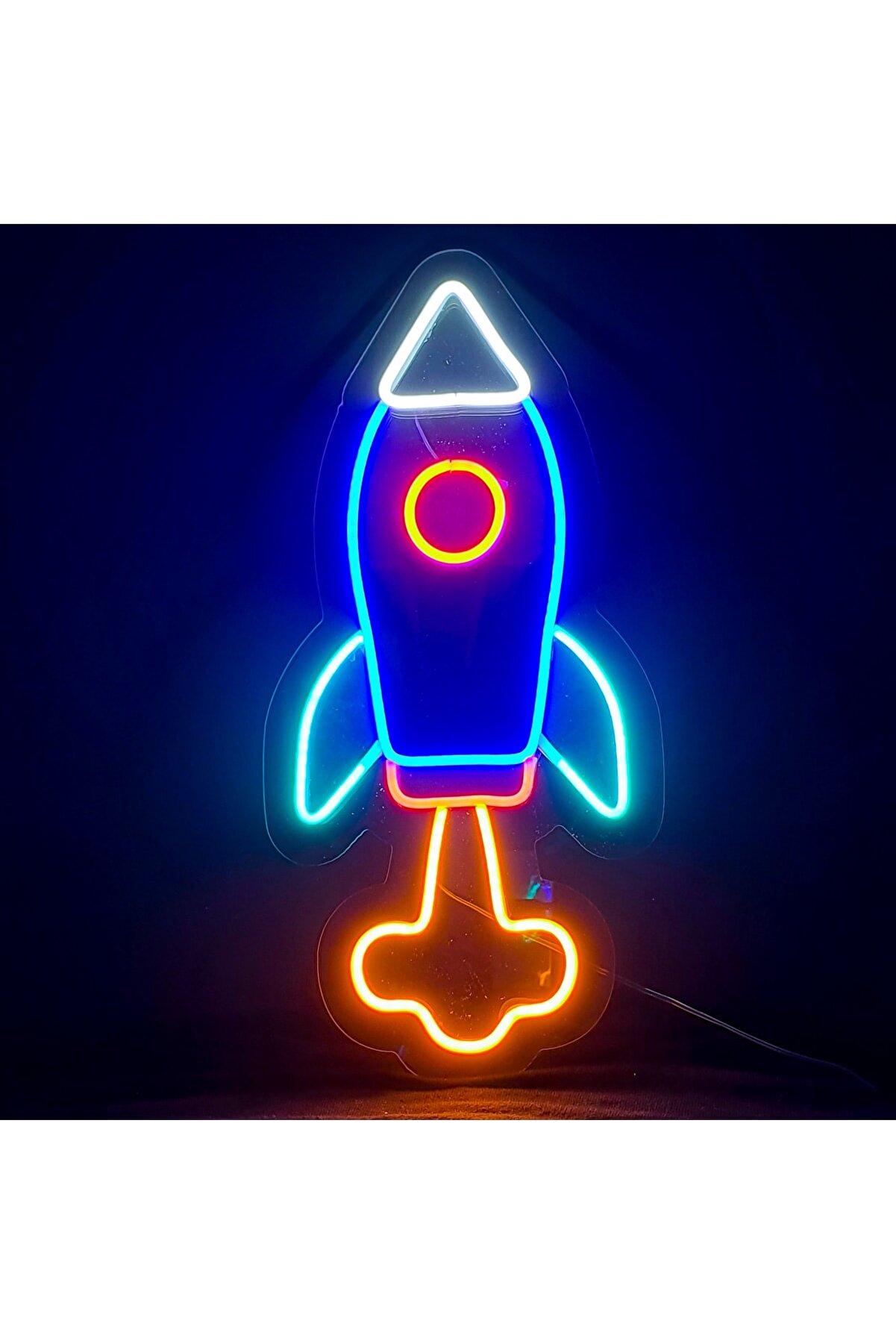 Neon Led Işıklı Roket Şeklinde Şeffaf Pleksi Üzerine Neon Led Tabela,