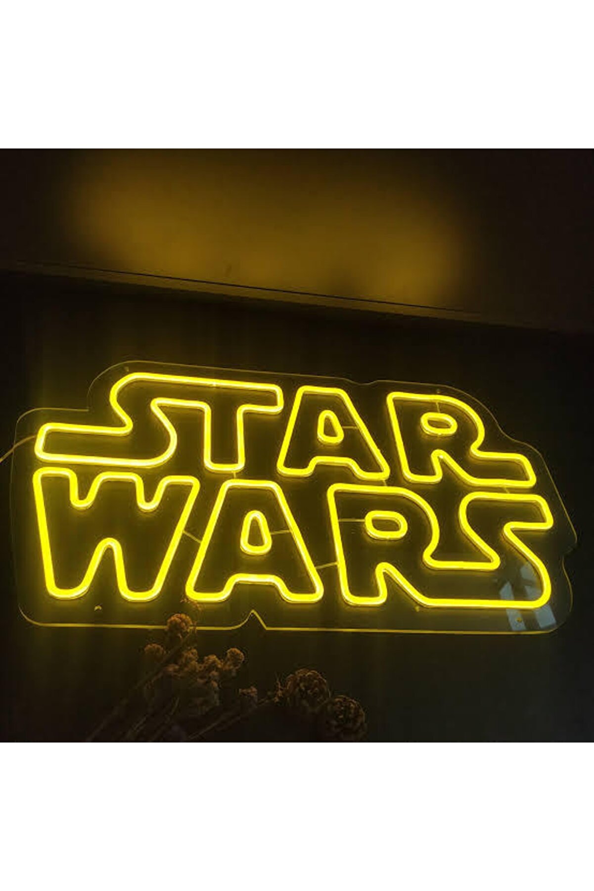 Neon Led Işıklı Star Wars Yazılı Şeffaf Pleksi Üzerine Neon Led Tabela,