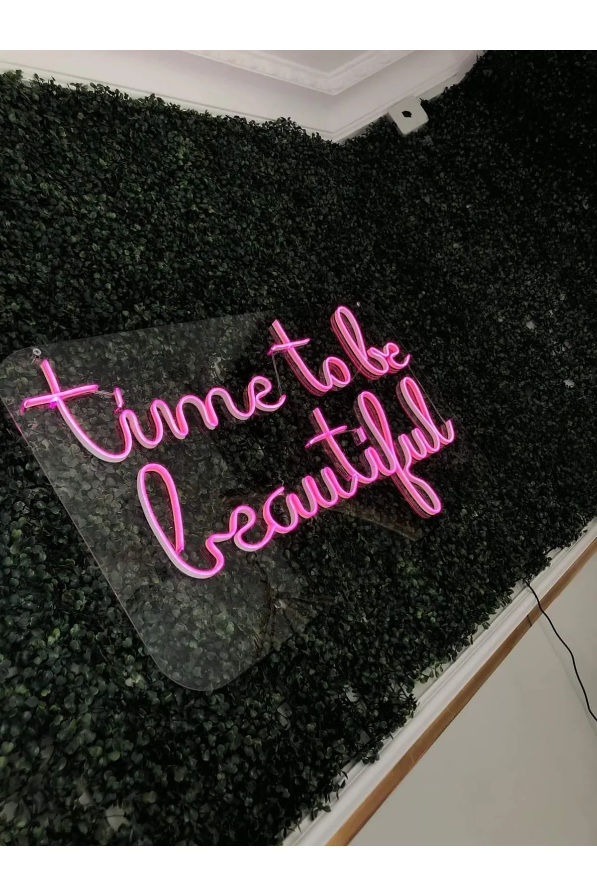 Neon Led Işıklı Time To Be Beautiful Yazılı Şeffaf Pleksi Üzerine Neon Led Tabela,
