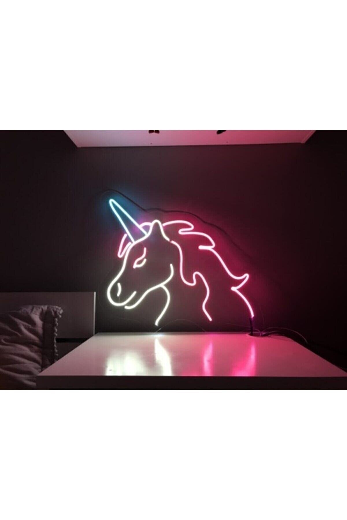 Neon Led Işıklı Unicorn Şeklinde Şeffaf Pleksi Üzerine Neon Led Tabela,