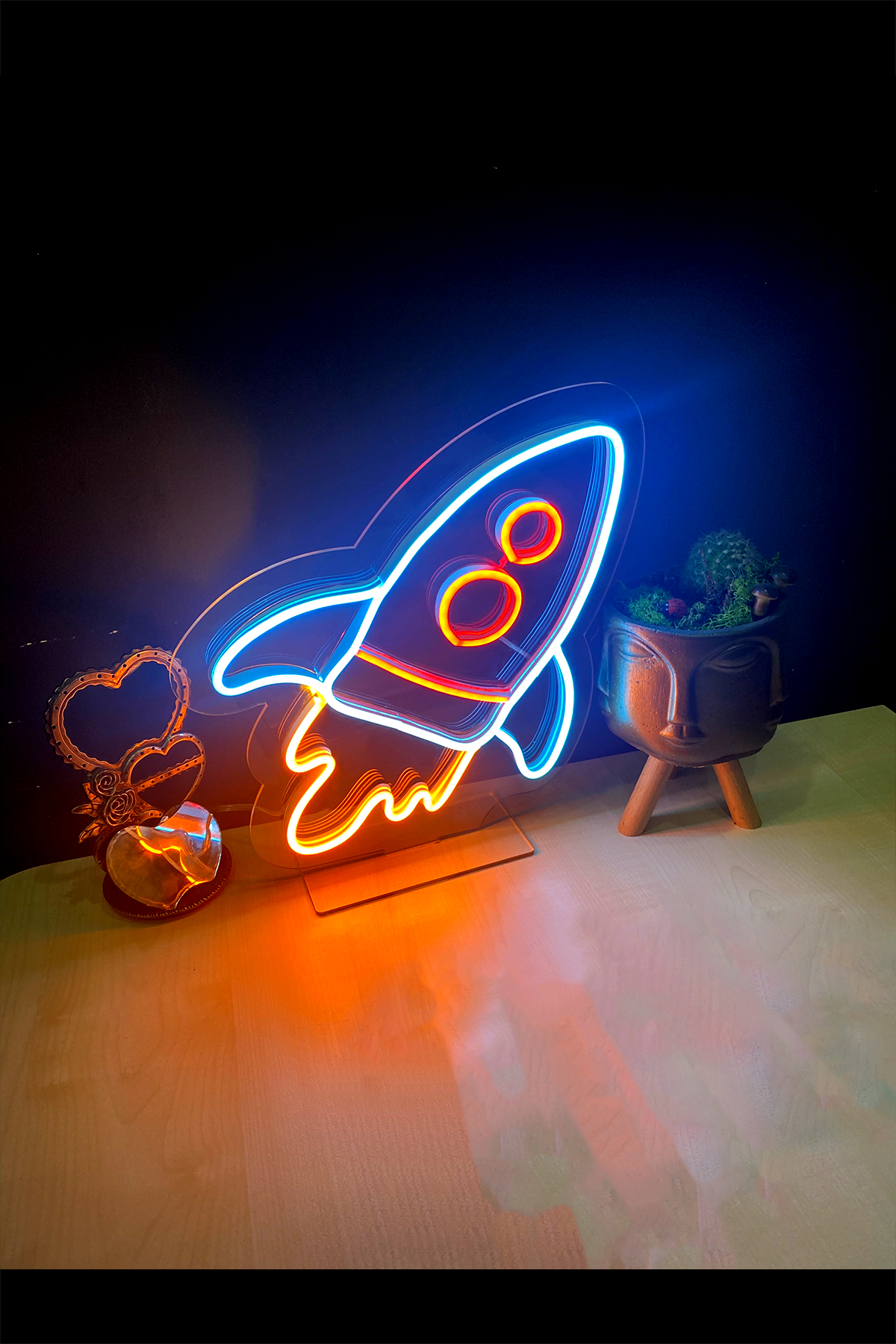 Neon Led Işıklı Uzay Mekiği Şeklinde Masaüstü/Duvar Şeffaf Pleksi Üzerine Neon Led Tabela,