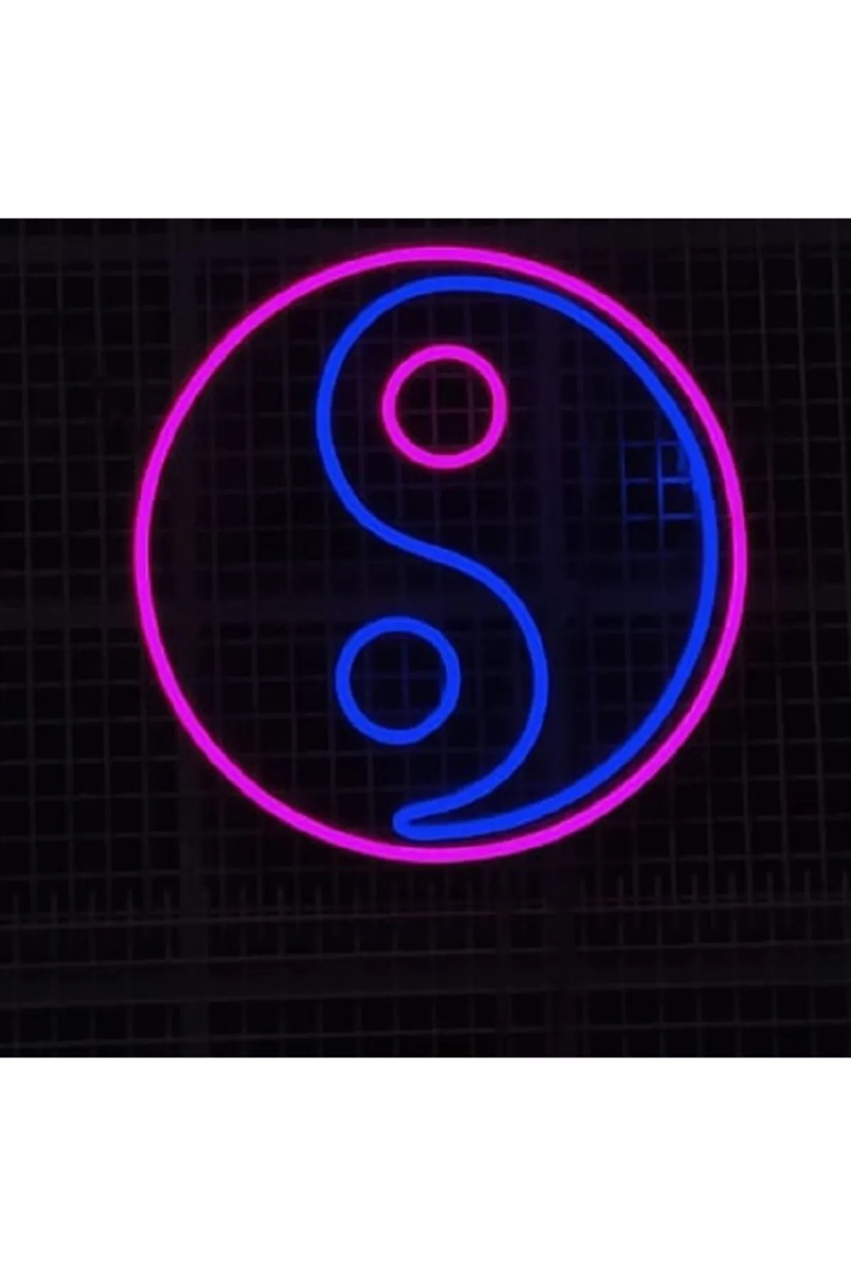 Neon Led Işıklı Yin Yang Şeklinde Şeffaf Pleksi Üzerine Neon Led Tabela,